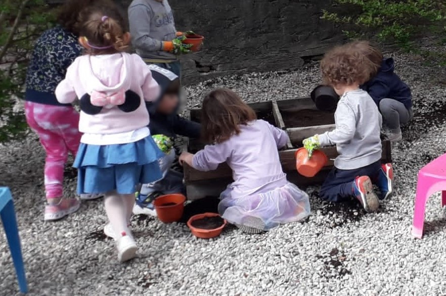 La speciale posizione della scuola, sita in una storica villa ai piedi del colle di Parravicino, in mezzo ai campi, rende gli spazi all’aperto un luogo privilegiato dove svolgere attività ludiche e educative.
